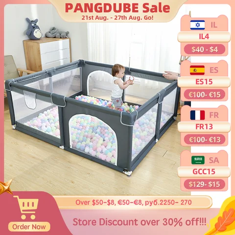 1.5*1.8m Baby Playpen with Foldable Mat,50pcs balls,4pcs hand rings, Storage bag Baby Fence Playpen for Children Playground