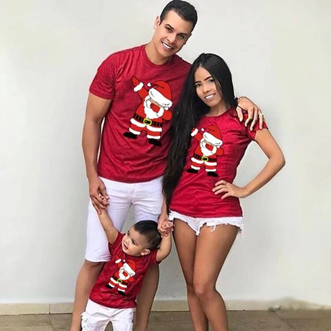 Santa Claus Merry Christmas Family Matching T-shirt lovely Mom Dad Kids Me Baby Outfit Mother Daughter Son Girl Boys Clothes