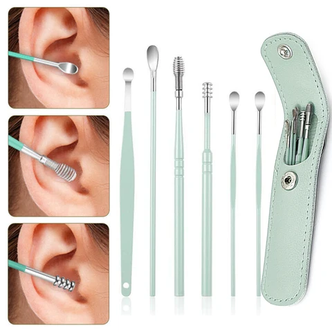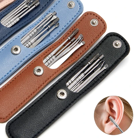 6Pcs/set Ear Wax Pickers Stainless Steel Earpick Wax Remover piercing kit earwax Curette Spoon Care Ear Clean Tool ear cleaner