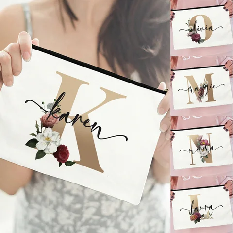 Custom Makeup Bag Bridesmaid Maid of Honor Holiday Wedding Bachelorette Party Gift Canvas Monogram Cosmetic Zipper Pouches