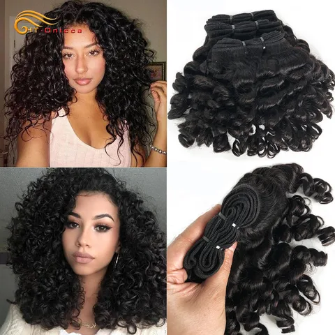 Htonicca Curly Hair Brazilian Weaving 1/3/4 PCS Human Hair Bouncy Curly Double Machine Weft Remy Natural Hair Extensions