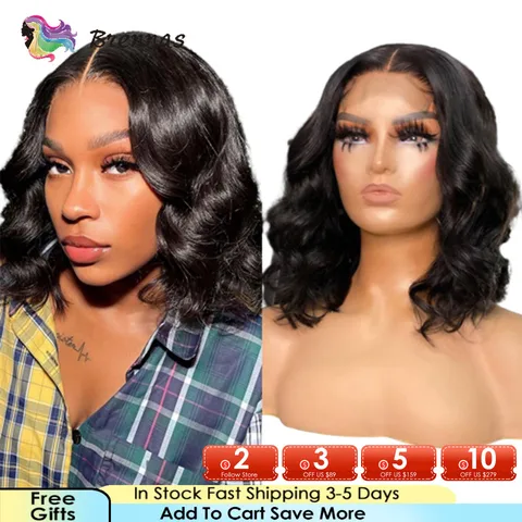 Body Wave Bob Wig 13x4 Peruvian Body Wave Lace Front Wigs Natural Color Preplucked Human Hair Lace Frontal Wigs For Black Women