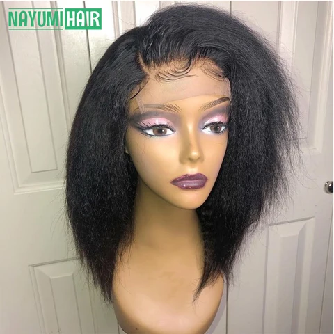 Short Kinky Straight Wig Lace Front Human Hair Wigs Glueless Closure Wig Soft Brazilian Yaki Straight Human Hair 4x4 Pre-Plucked