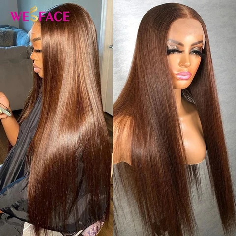 4x4 Lace Closure Human Hair Wigs Brazilian 180% Straight Brown Colored Lace Closure Wigs Remy Wigs For Black Women PrePlucked