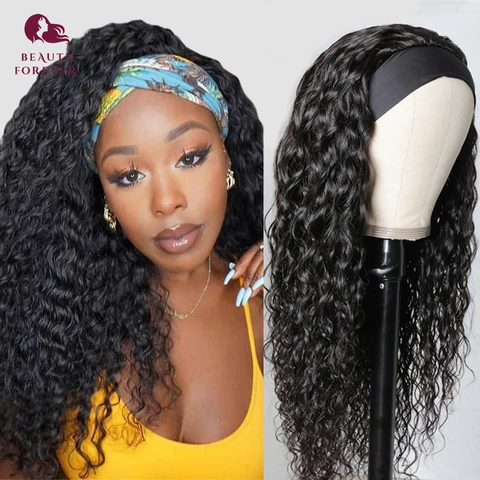 Beauty Forever Glueless Water Wave Headband Wigs Brazilian Scarf Wig Remy Human Hair Wigs for Women Beginner Friendly