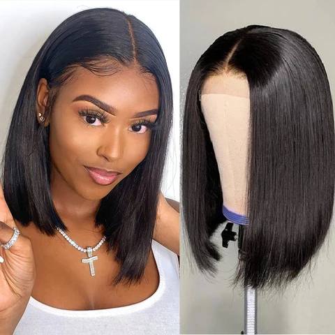 10A 250 Density Straight Short Wigs Human Hair Bob Wig Lace Front Human Hair Wigs Bob 4x4 Lace Frontal Wig Remy Brazilian Hair