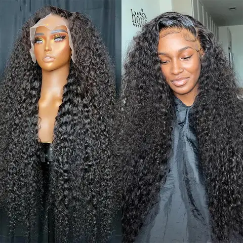Deep Curly Lace Frontal Closure Wig With Natural Hair Deep Wave 13X4 Transparent Lace Front Human Hair Wig For Women