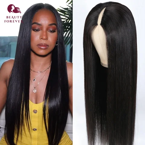 Beauty Forever Straight V Part Wig Human Hair Protective Style U Part Wigs No Lace No Gel Quick Weave V Shape Glueless Wig