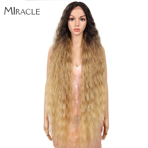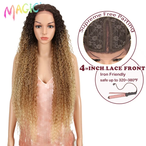 Magic Synthetic Lace Wigs 38 Inch Long Kinky Curly Wigs For Black Women Ombre Blonde Heat Resistant Hair High Temperature