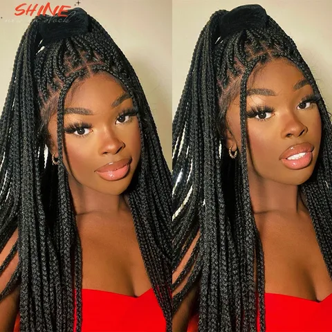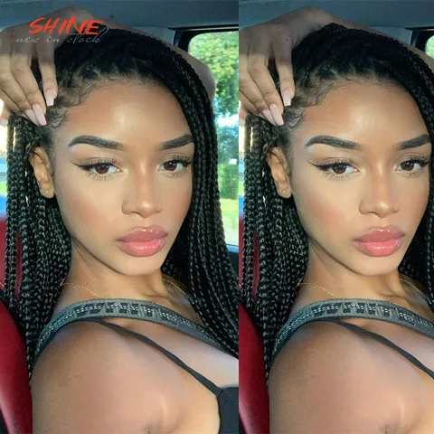 SHINE 30 Inches Box Wig Long Synthetic Lace Front Wig 13x4 Lace 150 Braids Wig For Black Woman Neat Braids Knotlessbraids