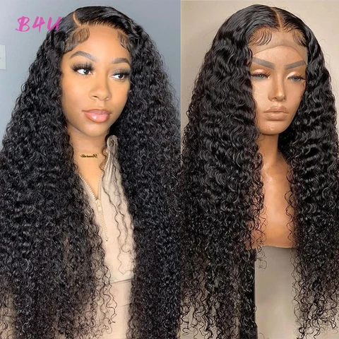 Deep Wave Frontal Wig Transparent Lace Front Human Hair Wigs For Black Women Brazilian Curly Lace Front Wig Lace Closure Wig