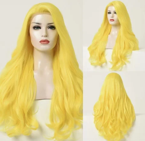 Meinmod Long Body Wave Yellow Synthetic Lace Front Wigs for Woman Heat Resistant Fiber Hair Natural Hairline Side Part Wigs
