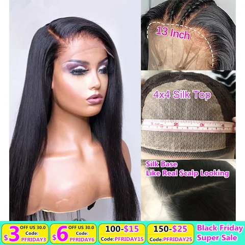 Silky Straight 13x4 Silk Top Lace Front Synthetic Wig Long Straight Heat Resistant Fiber Pre Plucked Wig with Natural Hairline