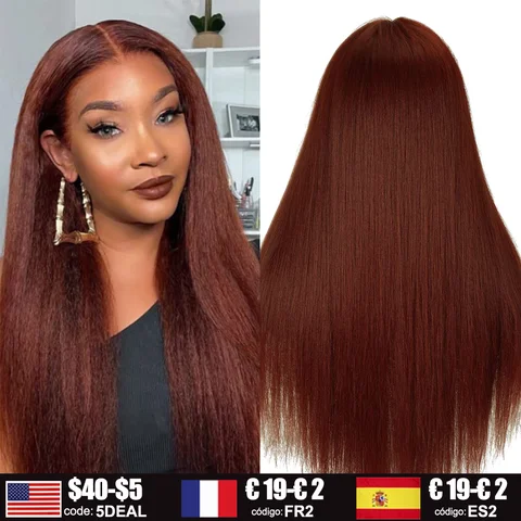 Kinky Straight Wig Synthetic 28 30Inch Yaki Straight Hair Heat Resistant Fiber Natural Brown Afro Wigs For Black Women Daily Use