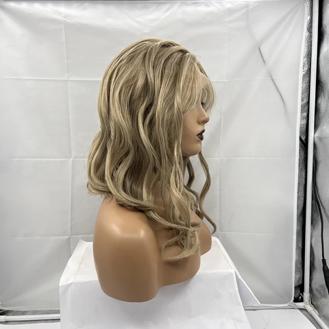 DLME blond color 13*4 lace front wig synthetic wigs wave hair 18 inches 220g 180% density