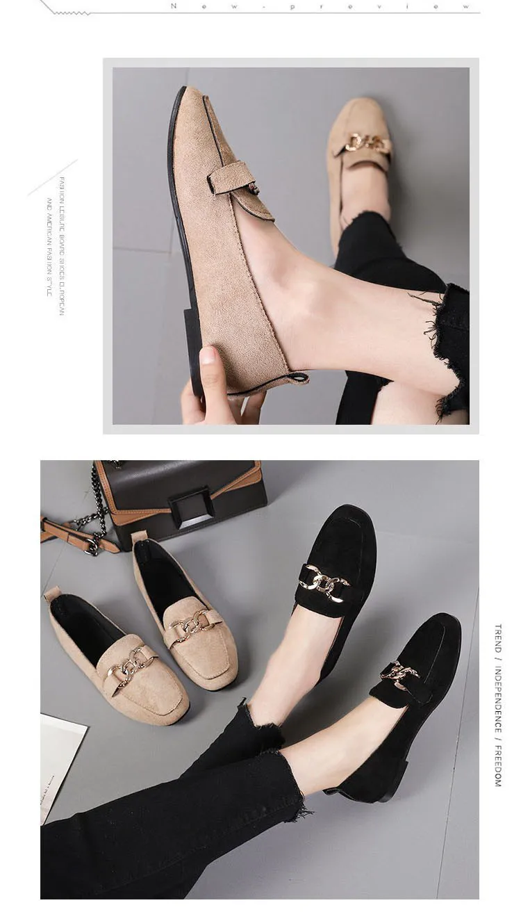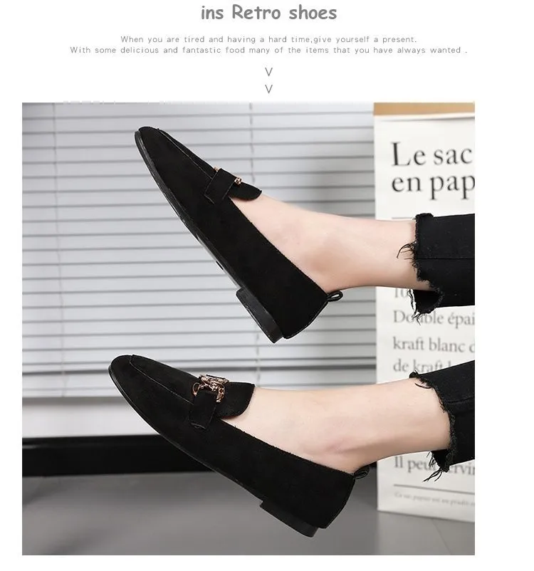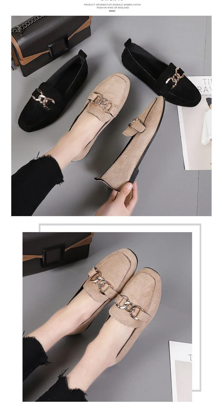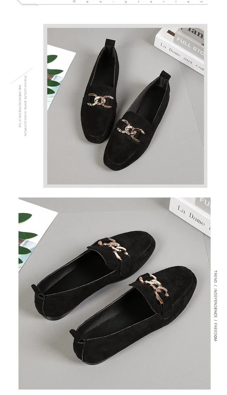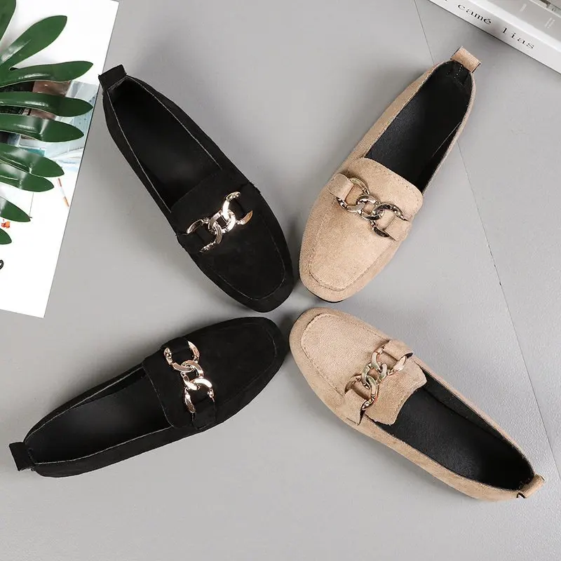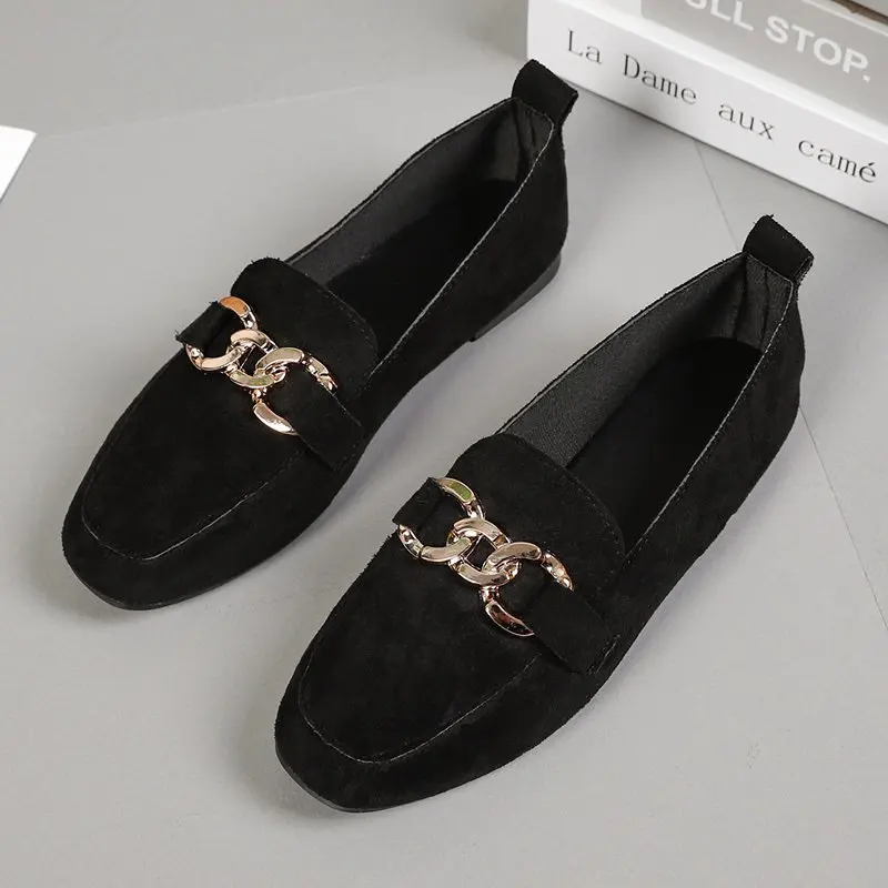 2023 New Women's Shoes Fashion Women's Flat Shoes Casual Loafer Shoes Women Quality Metal Slip on Ladies Shoes Zapatos De Mujer