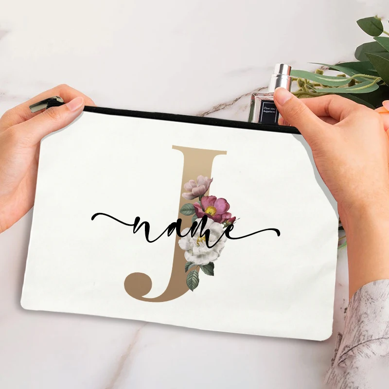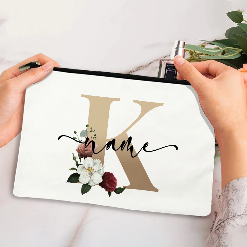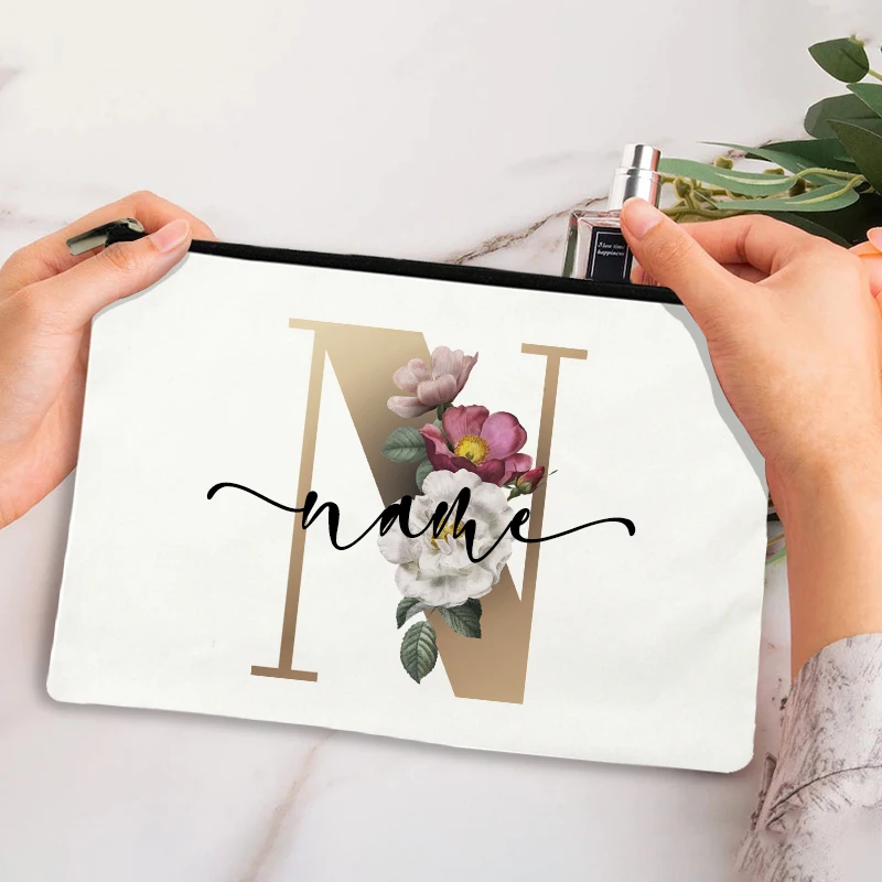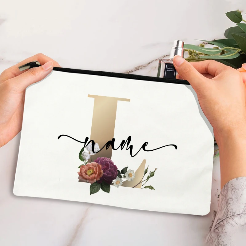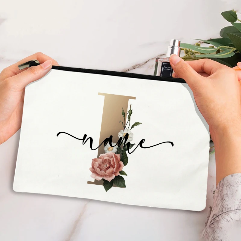 Custom Makeup Bag Bridesmaid Maid of Honor Holiday Wedding Bachelorette Party Gift Canvas Monogram Cosmetic Zipper Pouches
