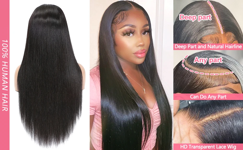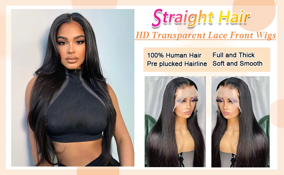 HD Transparent 360 Full Lace Frontal Wig Glueless Brazilian Remy Human Hair Pre Plucked Straight 13×6 Lace Front Wigs For Women