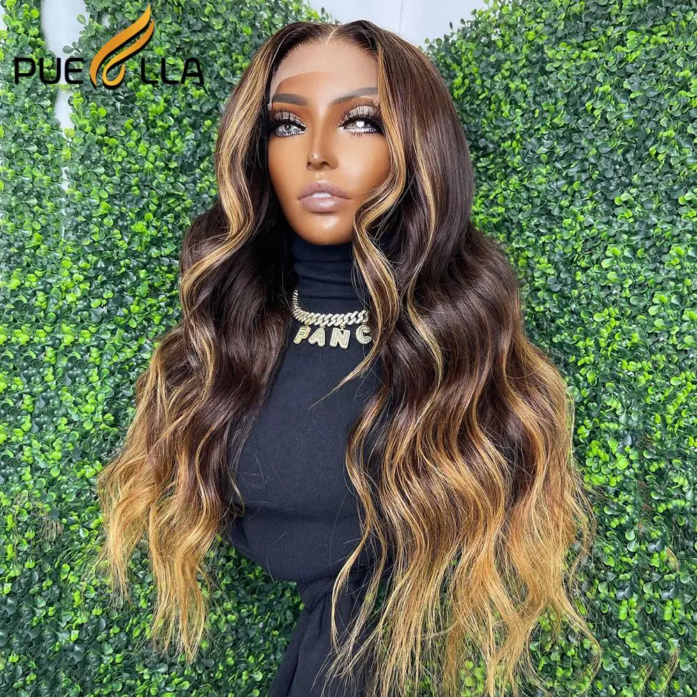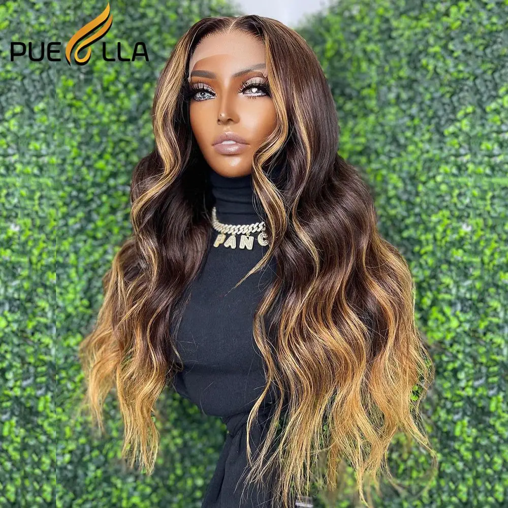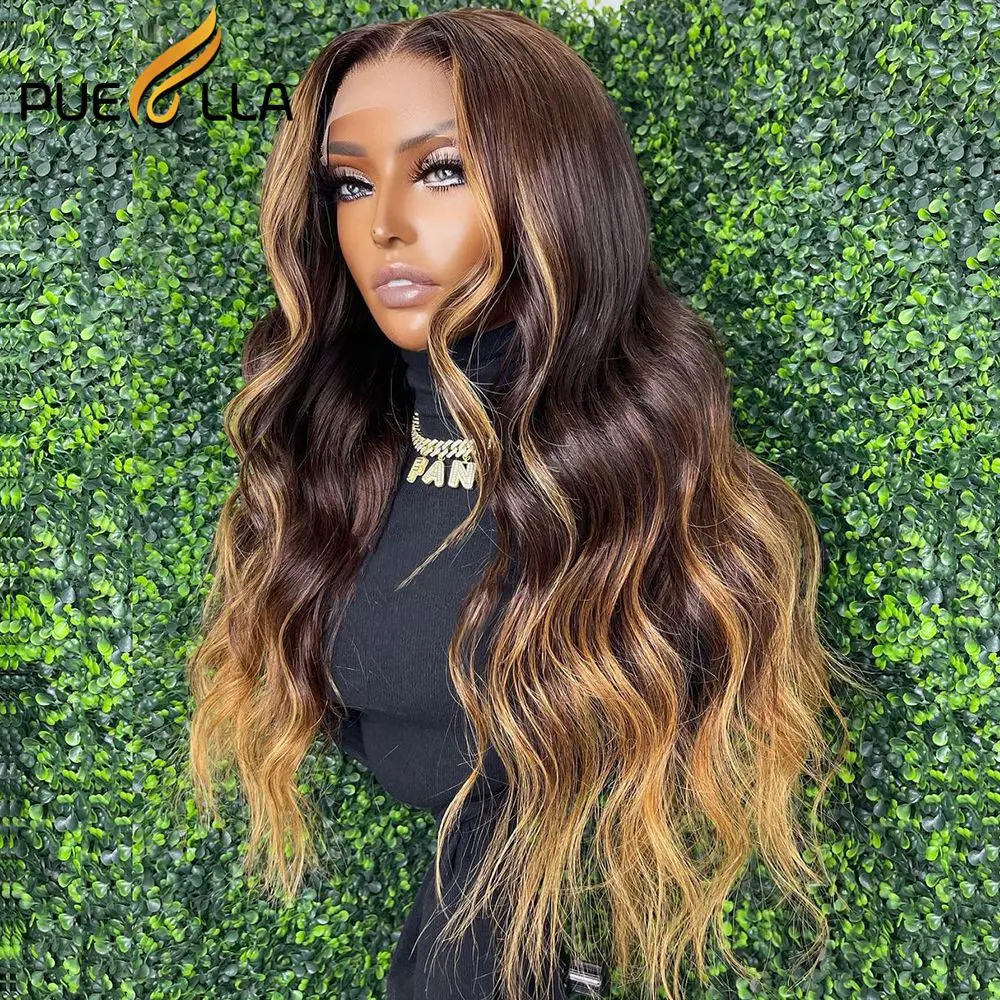 Highlight Honey Blonde 13X4 Lace Front Wig Human Hair Indian Glueless Body Wave Ombre Brown Colored Lace Frontal Wigs For Women
