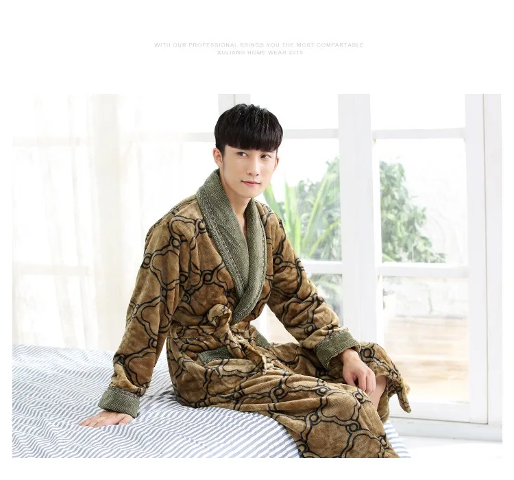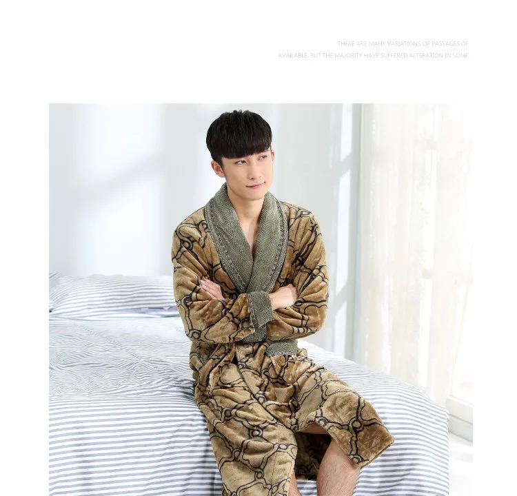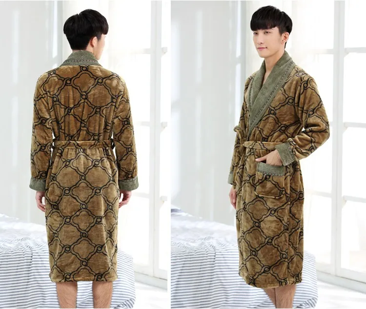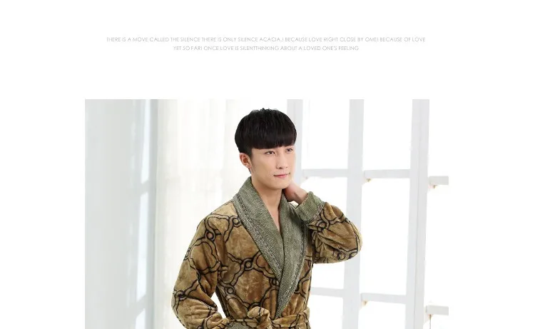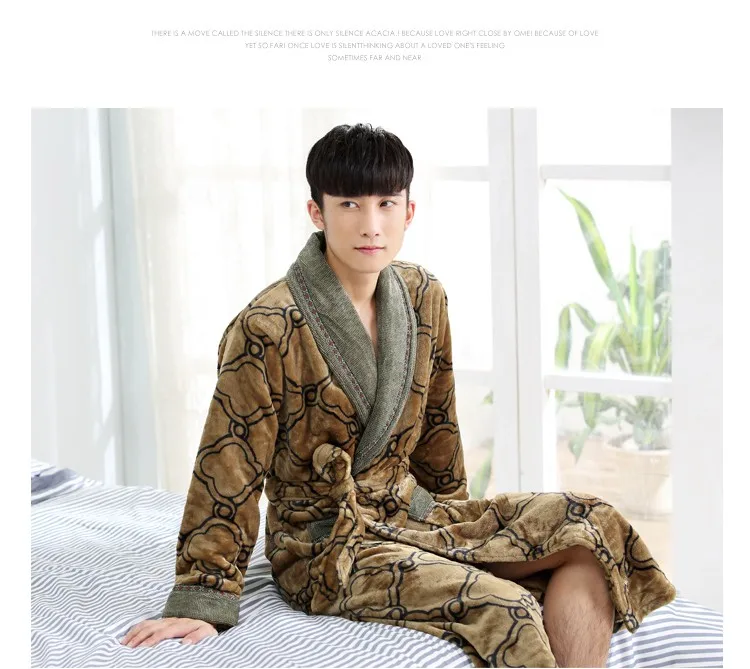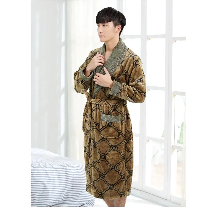New Arrival Winter Autumn Casual Cotton Satin Silk Male Nightwear Men Bathrobe Belt Elegant Bathroom Spa Thick Flannel Men Robe